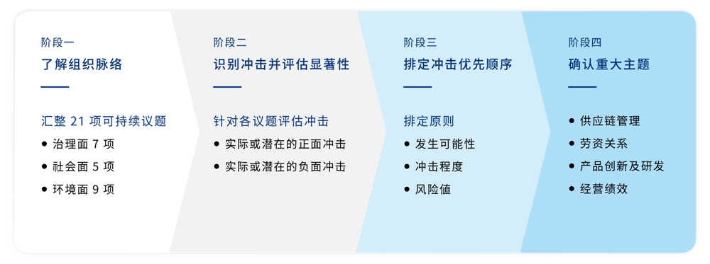 本公司依据"GRI3:重大主题2021"评估重大主题在经济、环境、人群(包含其人权)影响的重要性,执行步骤如下: