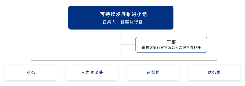 蔚华科技于 2024 年 2 月 5 日成立跨部门(业务、人力资源处、运营处、财务处、公司治理)“可持续发展推进小组”,作为公司内部最高级别的可持续发展专责组织。小组由首席执行官担任召集人,成员包括人力资源部资深协理、运营部协理、财务部资深经理及公司治理主管,采用集团化管理模式,并由首席执行官指派公司治理主管担任干事以推动相关工作。
